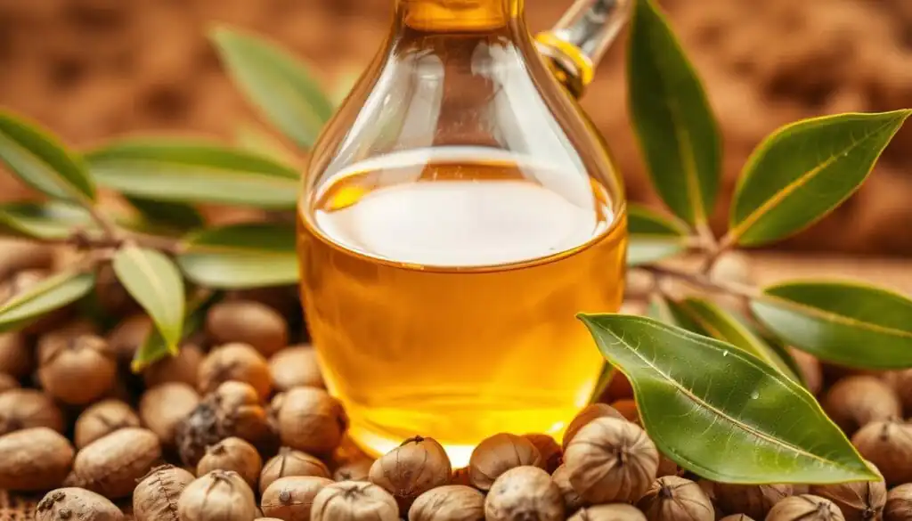 Argan oil from Morocco is known for its beauty benefits. It comes from the argan tree’s kernels. This oil is great for your hair, skin, and nails, making it essential for beauty care.